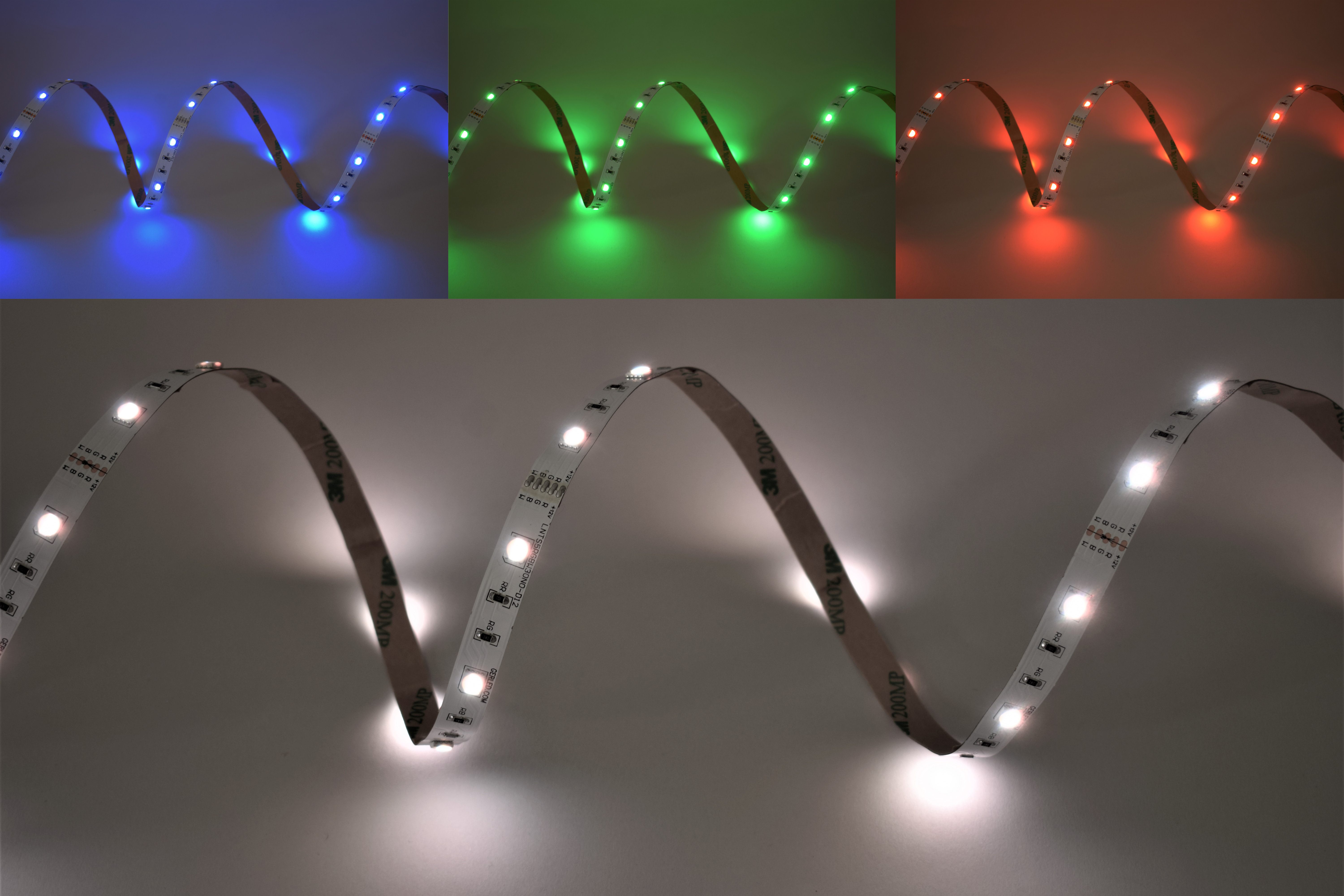 La striscia GERLED® Professional RGBW è realizzato sulla base di un nuovo tipo di diodo SMD, in cui sono presenti quattro chip indipendenti che emettono luce. Ciò consente di ottenere qualsiasi colore dalla tavolozza RGB ed in più il vigoroso bianco freddo 6500K. Questa è la striscia più universale nel nostro assortimento.
