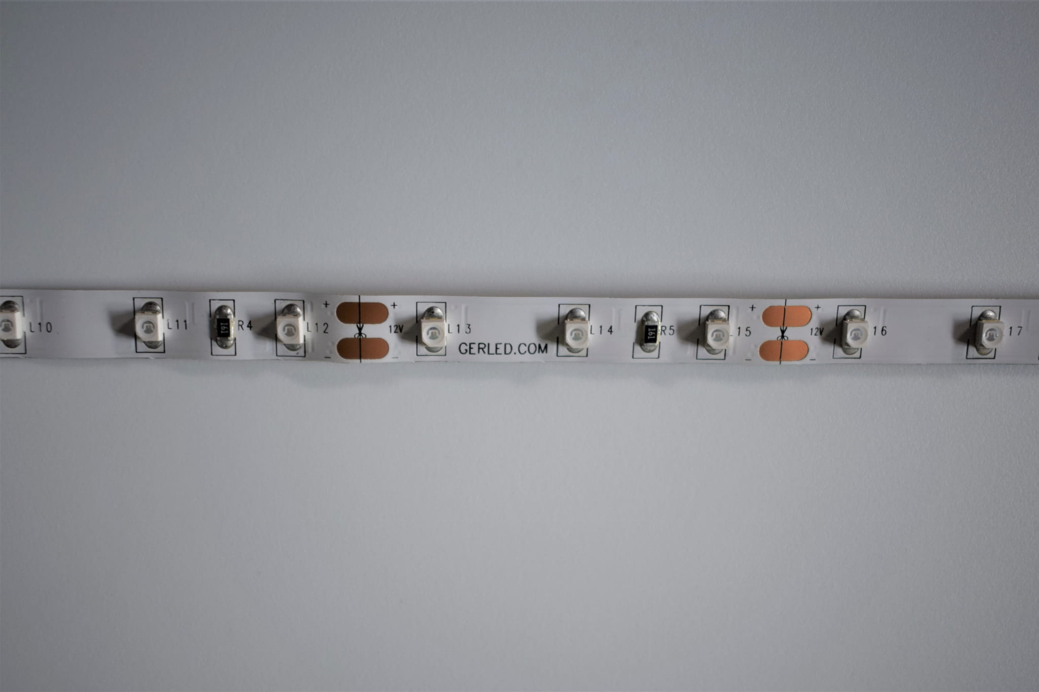 Le strisce LED della serie GERLED® Professional hanno un doppio strato di base per PCB. Assicura una migliore dissipazione del calore dai LED e, di conseguenza, aumenta significativamente la vitalità del prodotto. Grazie al maggiore spessore del supporto, la striscia è anche più resistente ai danni meccanici.