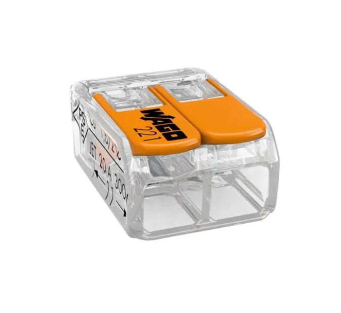 Szybkozłączka WAGO uniwersalna serii 221 wyposażona w zacisk CAGE CLAMP przeznaczona do łączenia przewodów.