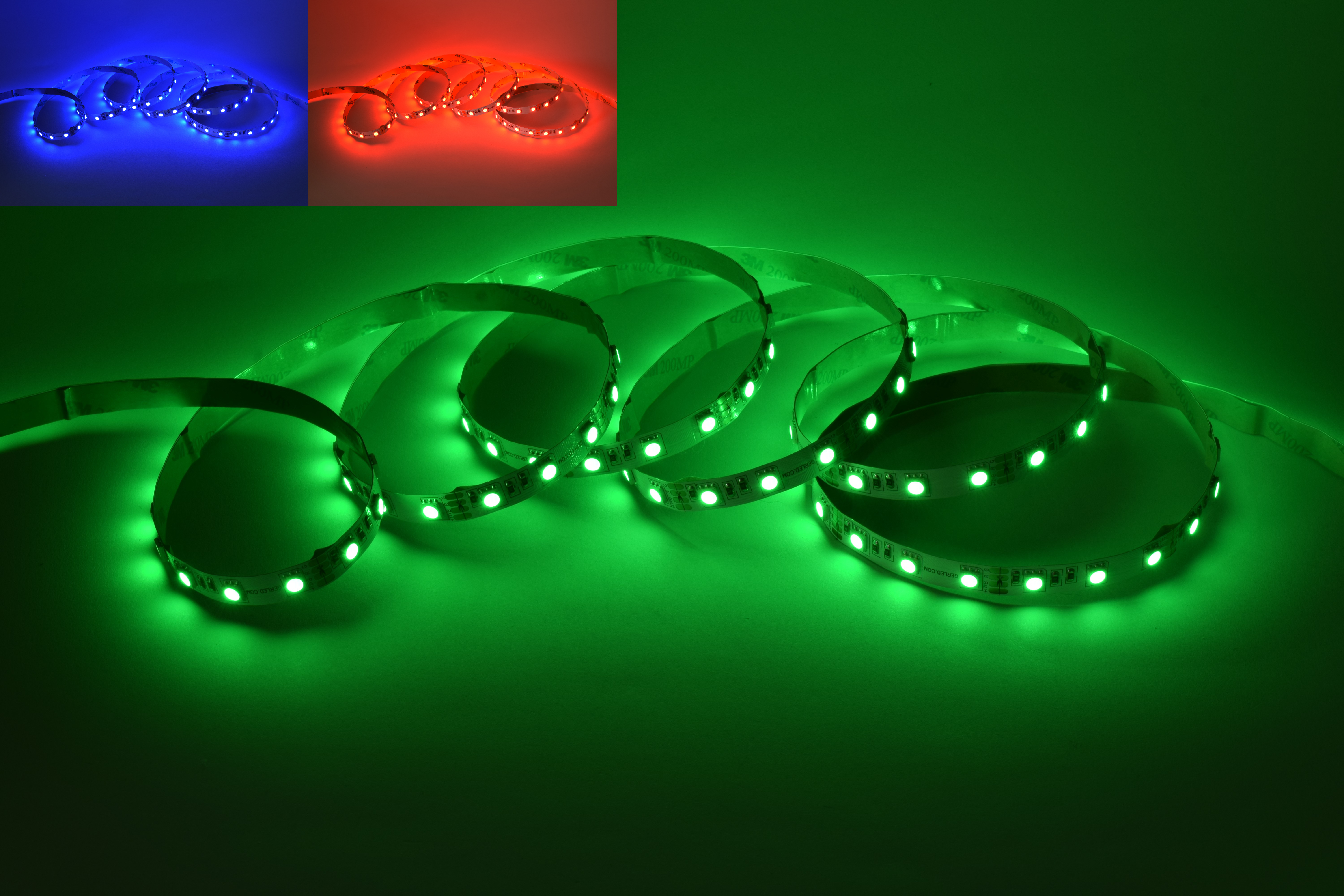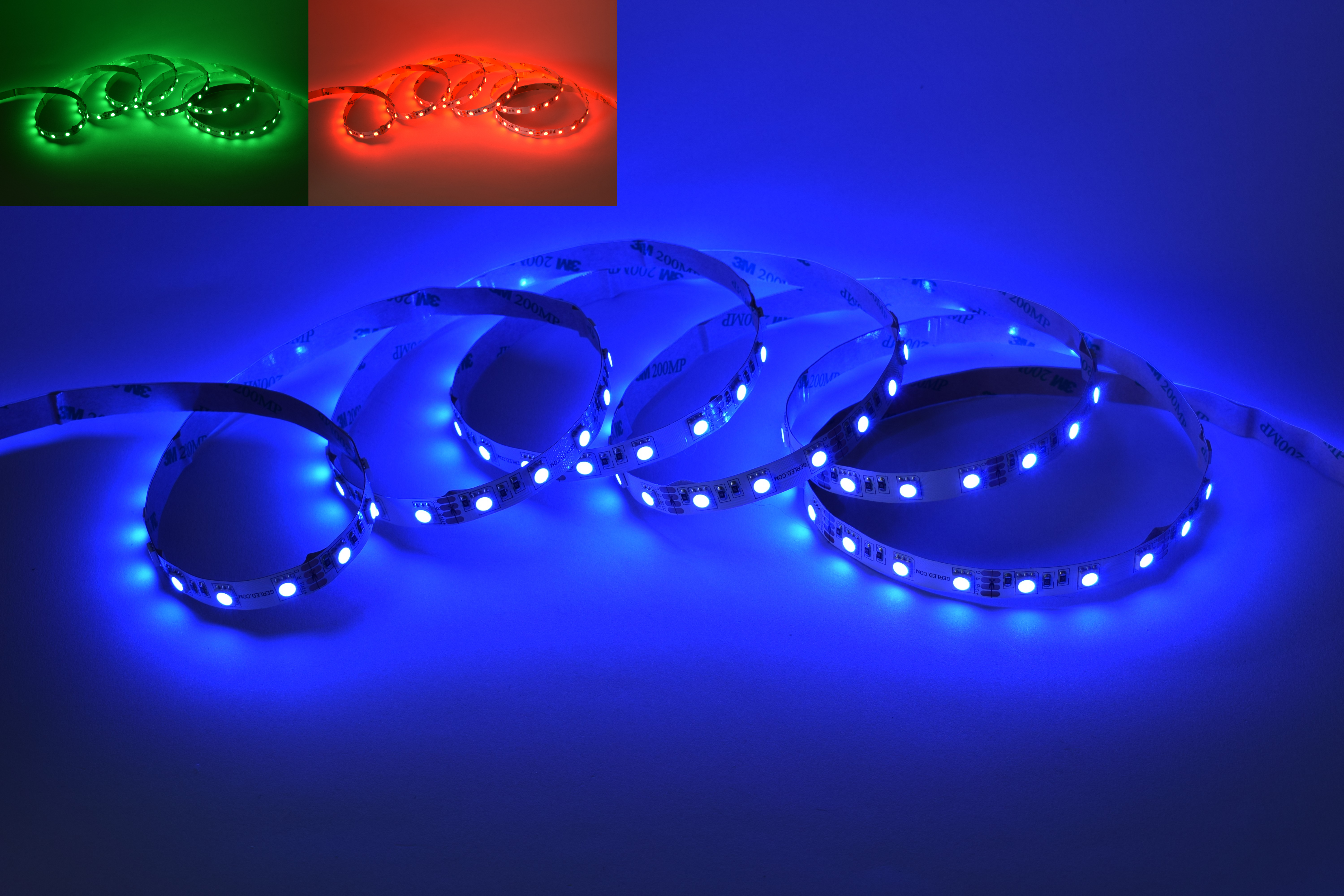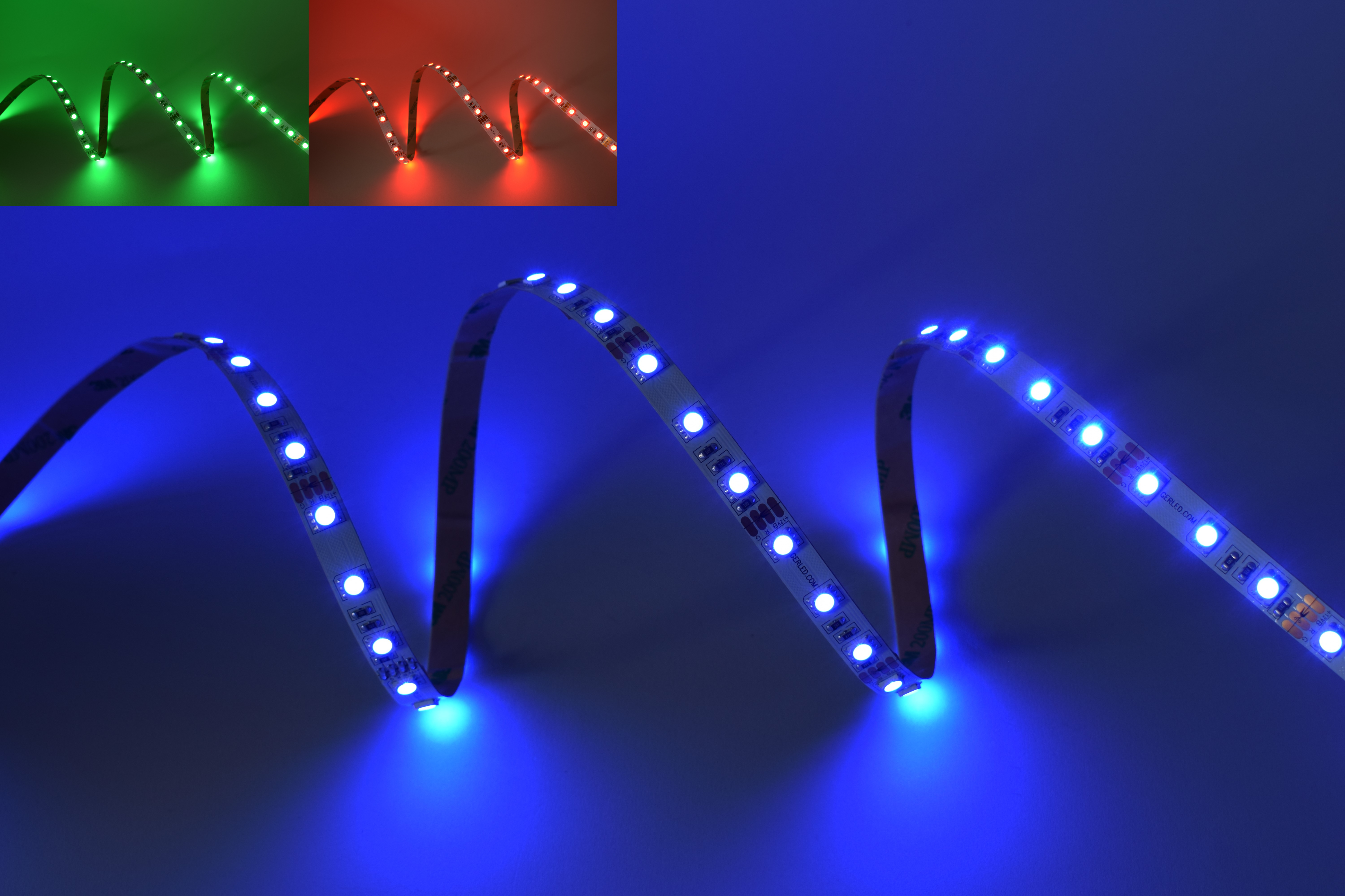 Taśma LED SMD 5050 RGB z serii GERLED® Professional posiada specjalne diody, które mogą świecić w trzech różnych kolorach - czerwonym, zielonym lub niebieskim. Kolorami oraz natężeniem światła można sterować w dowolny sposób za pomocą odpowiednio dobranego sterownika manualnego bądź z pilotem, które również znajdują się w naszej ofercie.