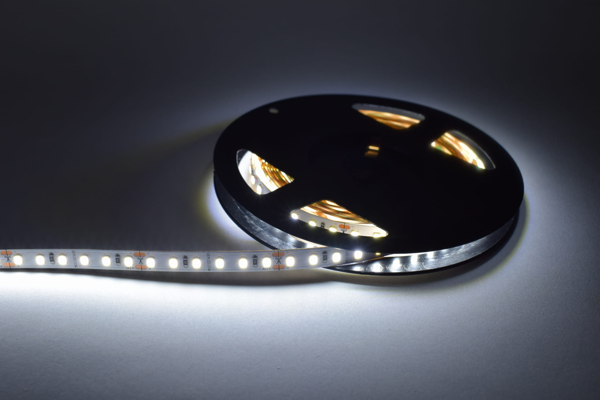 Taśmy LED z serii GERLED® Professional posiadają podwójną warstwę podłoża PCB. Zapewnia ona lepsze odprowadzanie ciepła z diod ledowych, a co za tym idzie, znacząco zwiększa żywotność produktu. Dzięki zwiększonej grubości podłoża taśma jest również bardziej odporna na uszkodzenia mechaniczne.