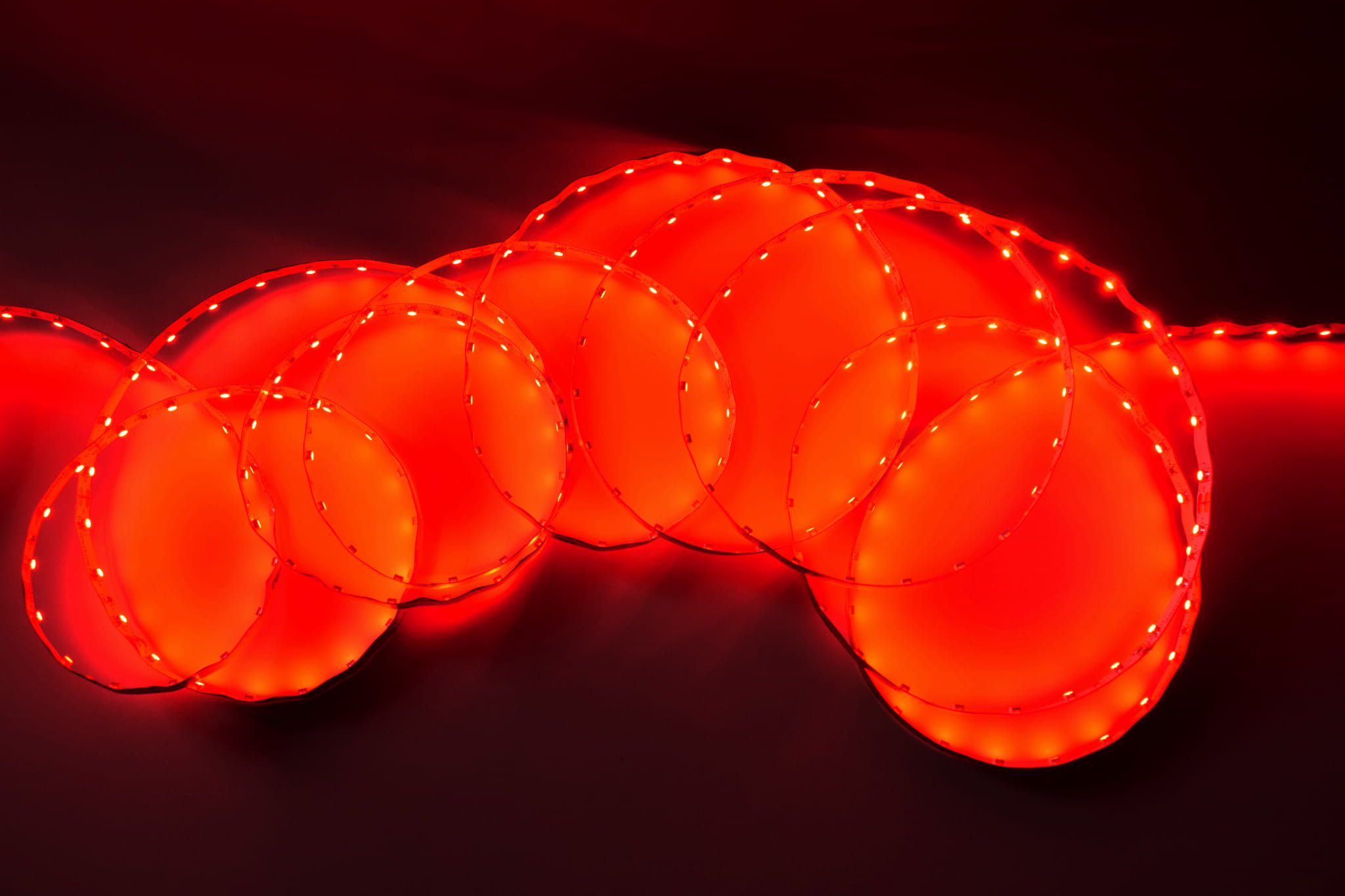 Taśmy jednokolorowe świecą intensywną barwą w danym kolorze, dzięki czemu świetnie sprawdzą się przy instalacjach, które nie wymagają zmiany koloru emitowanego światła. Dostępne są w sześciu podstawowych barwach (czerwony, fioletowy, niebieski, zielony, żółty, różowy).