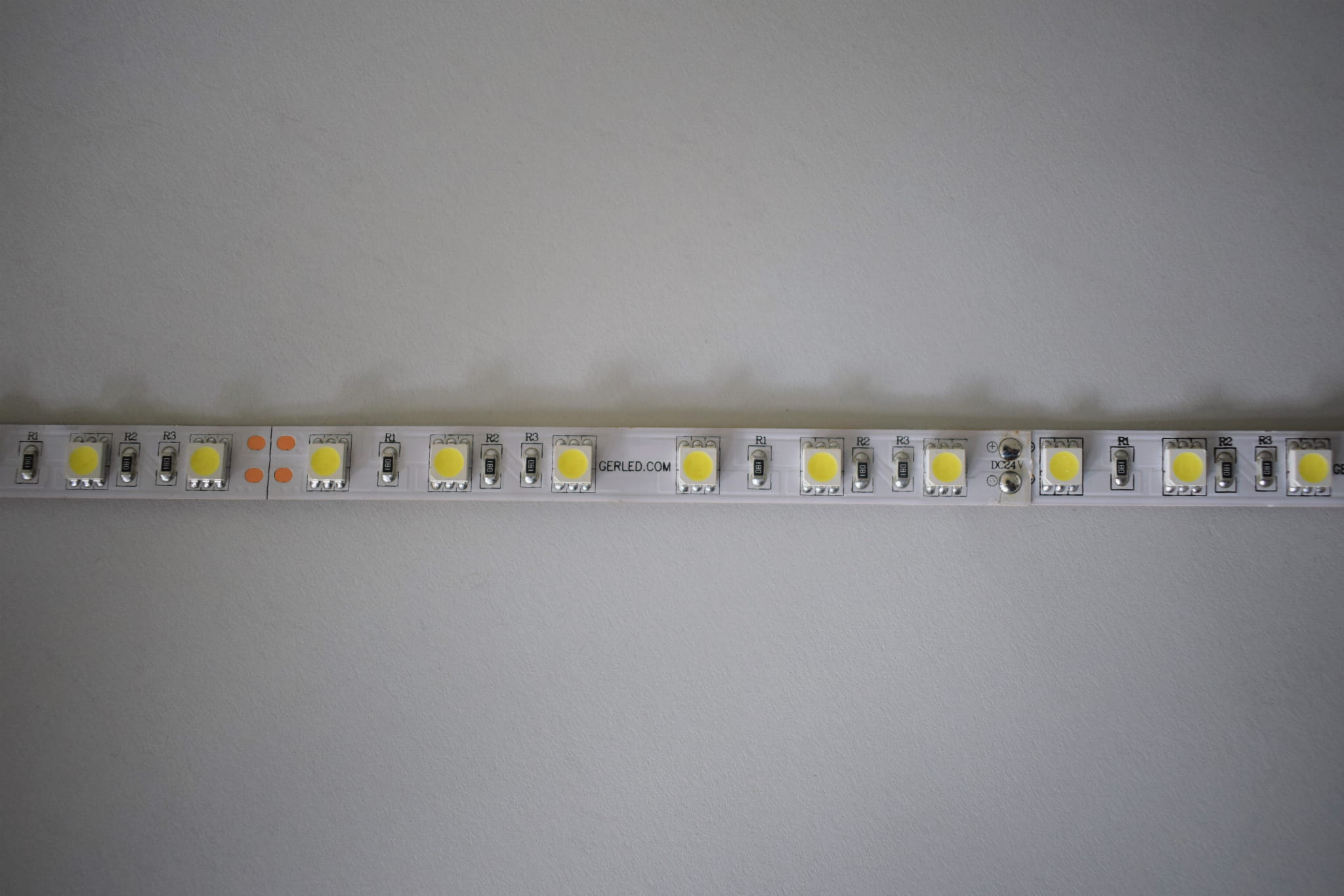 Taśmy GERLED® Professional 5050 zasilane napięciem 24V pozornie niewiele różnią się od taśm zasilanych na 12V jednak kilka kwestii sprawia, że są one ciekawą alternatywą dla znacznie popularniejszych taśm 12V. Przede wszystkim zasilanie napięciem 24V znacznie ogranicza spadki napięcia na całej długości taśmy LED i pozwala na zasilanie dłuższych odcinków taśmy niż w przypadku 12V. Szczególnie przy taśmach o dużym poborze mocy zaleca się zasilanie 24V. Ponadto taśmy 24V ułatwiają integrację z systemami inteligentnych instalacji w budynkach oraz autobusach czy tirach gdzie standardowe zasilanie to 24V.