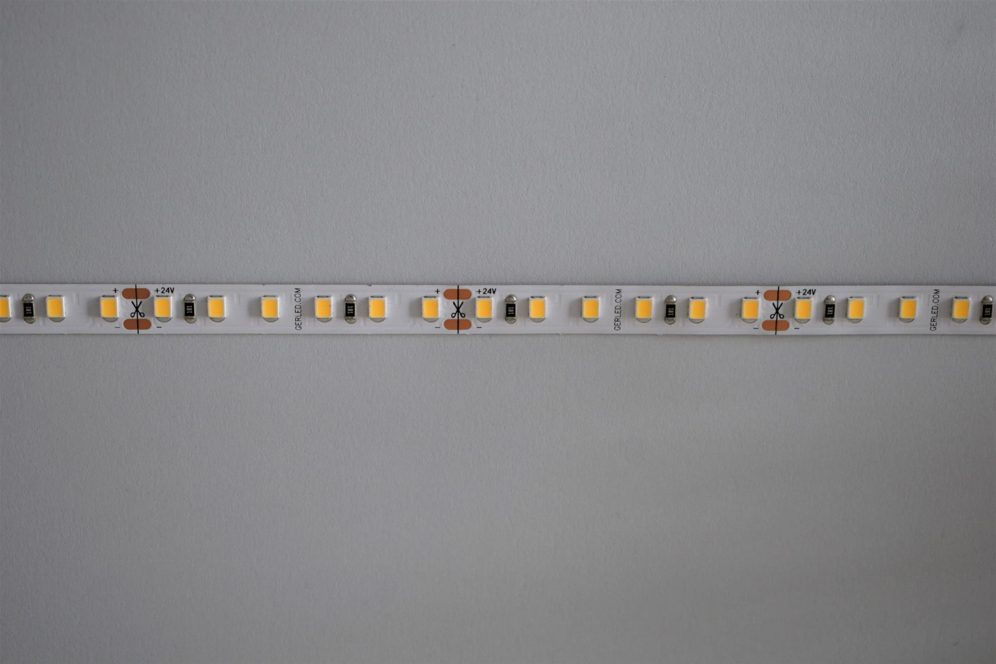 Taśmy GERLED® Professional 2835 zasilane napięciem 24V pozornie niewiele różnią się od taśm zasilanych na 12V jednak kilka kwestii sprawia, że są one ciekawą alternatywą dla znacznie popularniejszych taśm 12V. Przede wszystkim zasilanie napięciem 24V znacznie ogranicza spadki napięcia na całej długości taśmy LED i pozwala na zasilanie dłuższych odcinków taśmy niż w przypadku 12V. Szczególnie przy taśmach o dużym poborze mocy zaleca się zasilanie 24V. Ponadto taśmy 24V ułatwiają integrację z systemami inteligentnych instalacji w budynkach oraz autobusach czy tirach gdzie standardowe zasilanie to 24V.