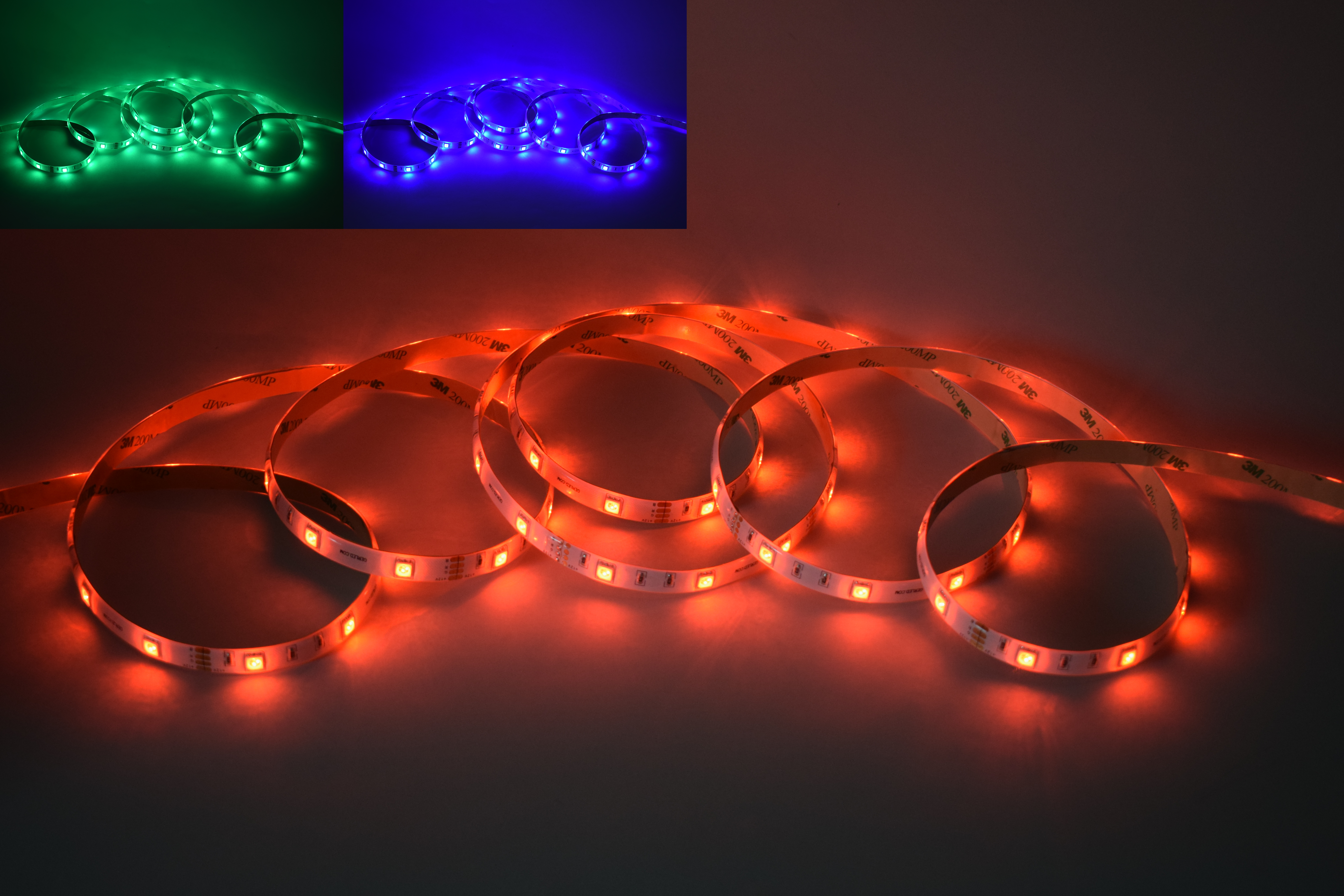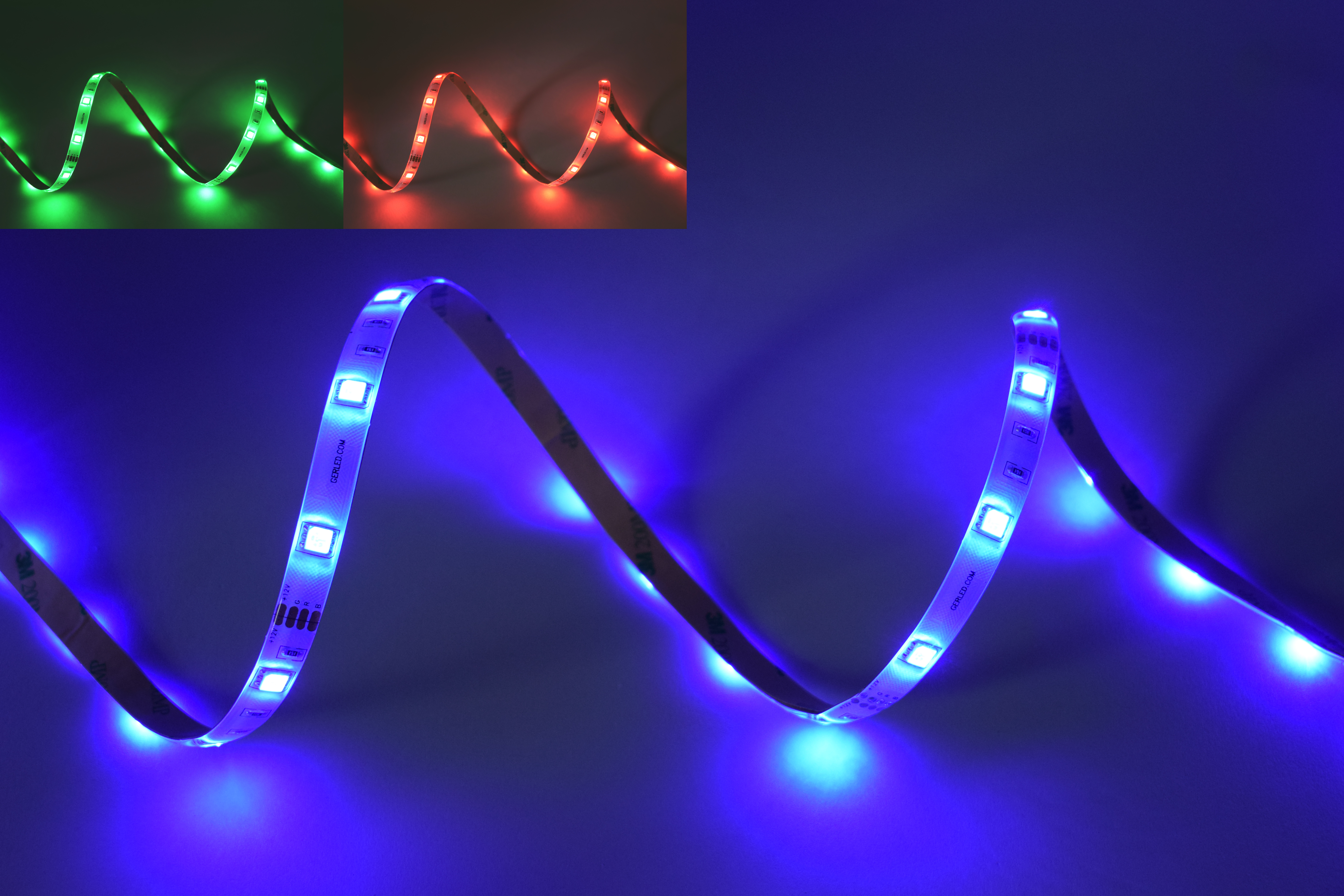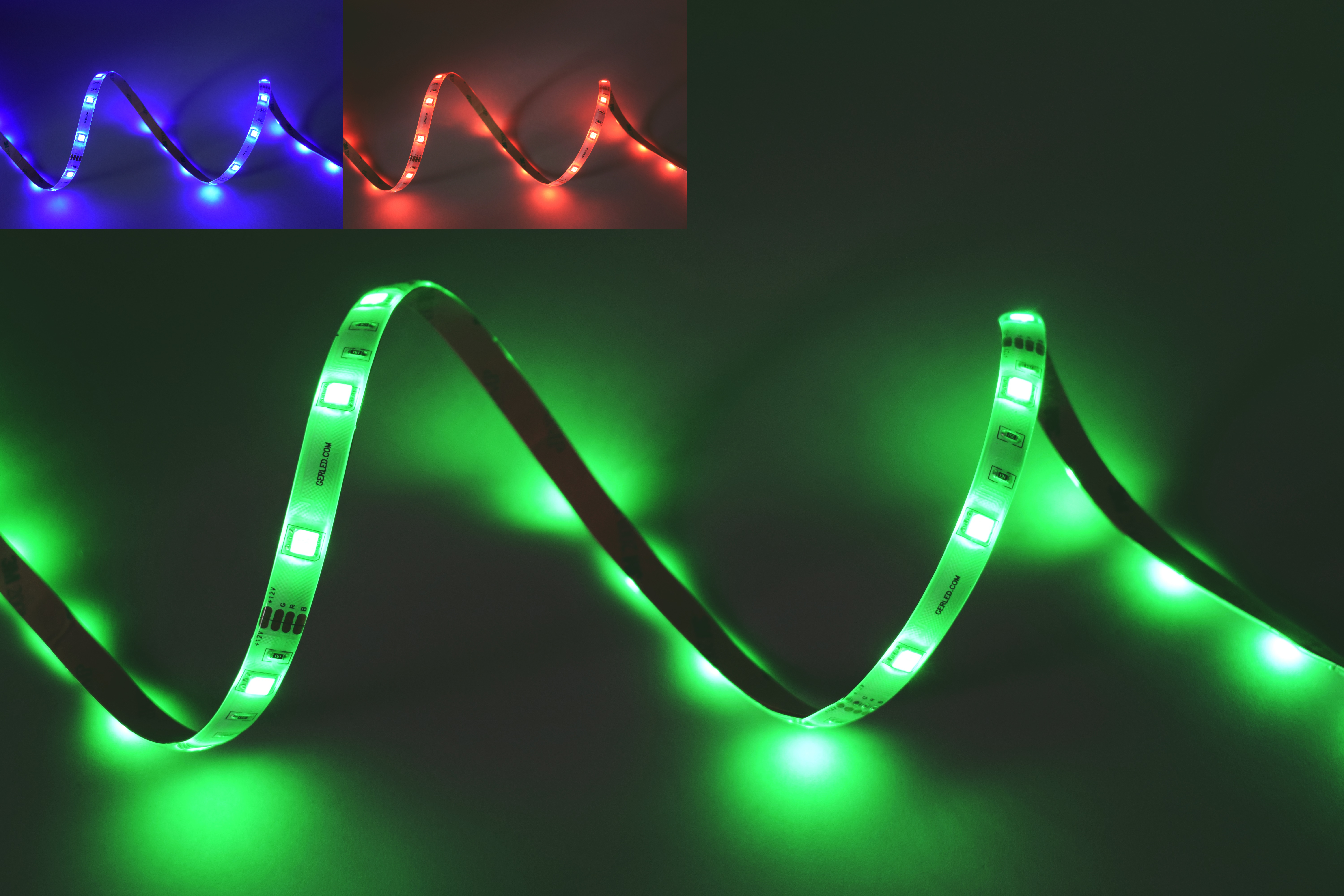Taśma LED SMD 5050 RGB z serii GERLED® Professional IP65 posiada specjalne diody, które mogą świecić w trzech różnych kolorach - czerwonym, zielonym lub niebieskim. Kolorami oraz natężeniem światła można sterować w dowolny sposób za pomocą odpowiednio dobranego sterownika manualnego bądź z pilotem, które również znajdują się w naszej ofercie.