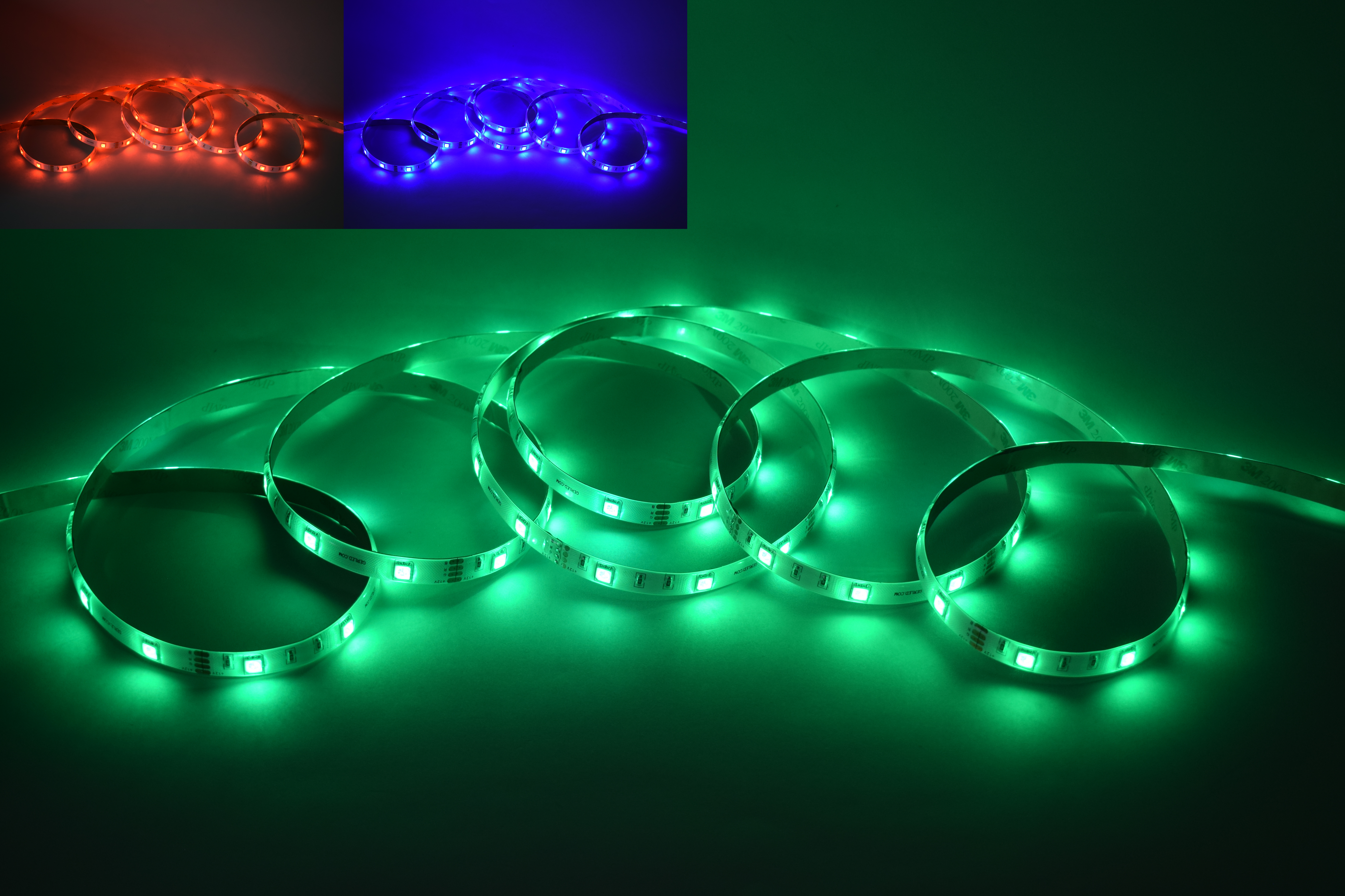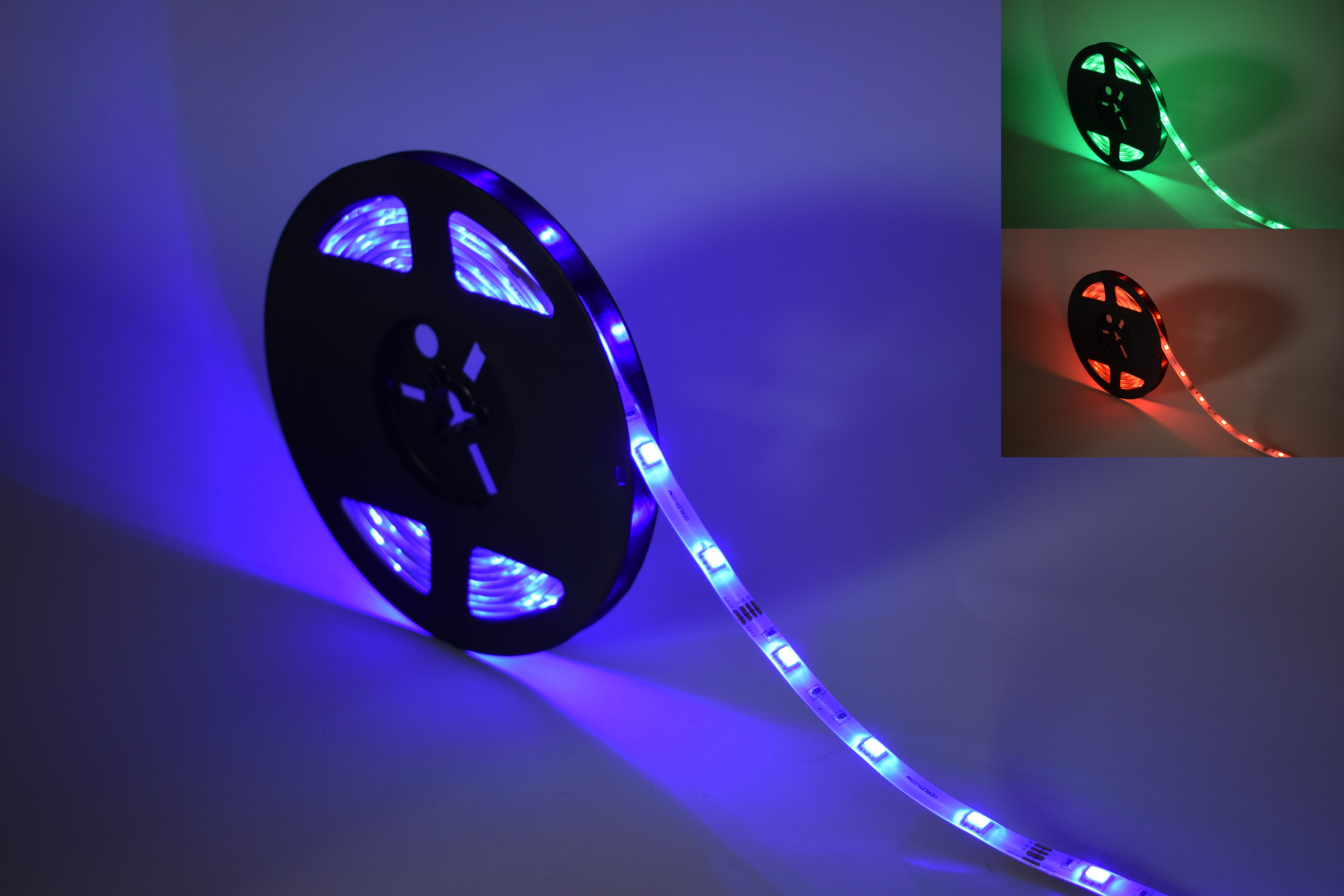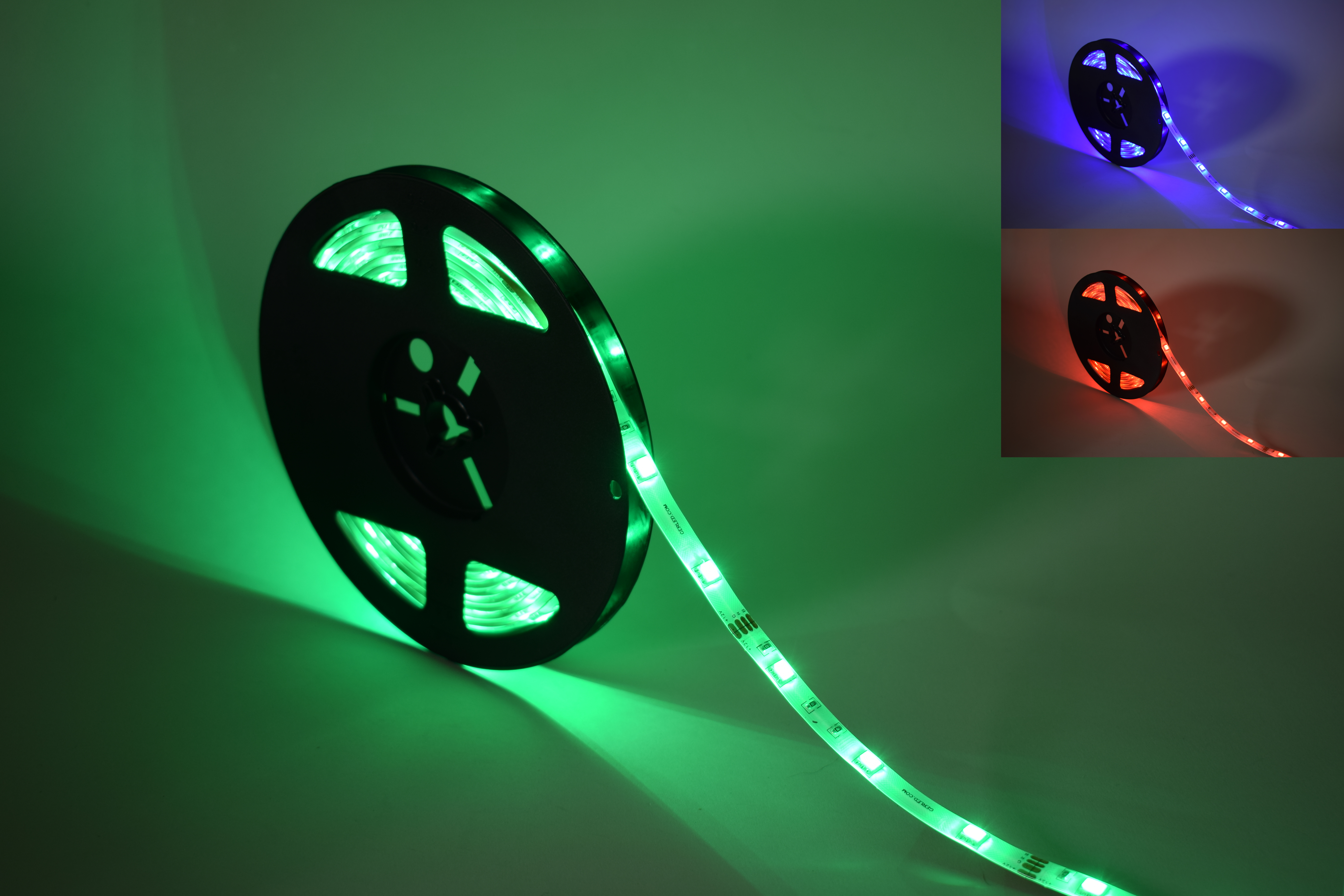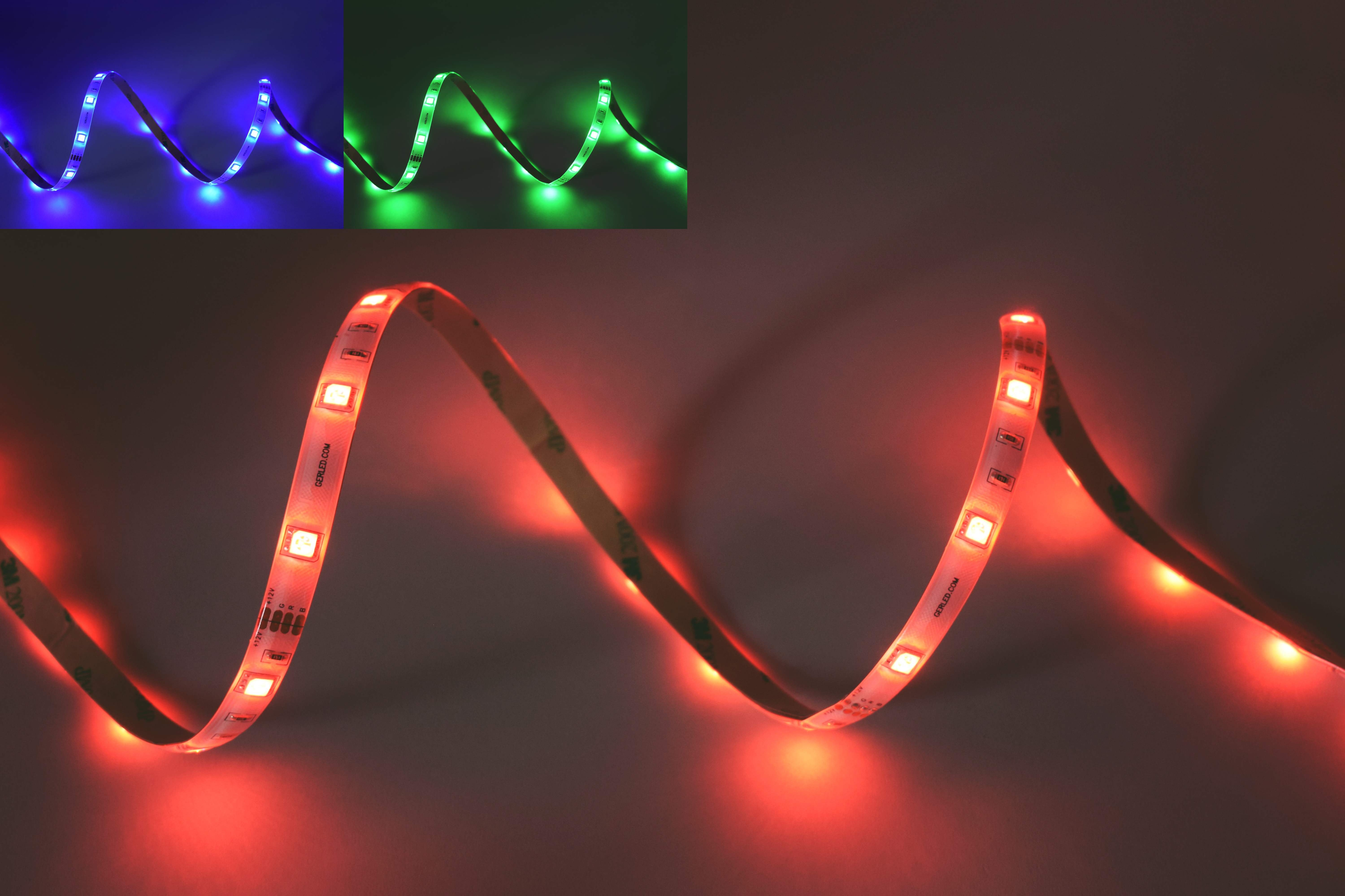 Taśma LED SMD 5050 RGB z serii GERLED® Professional IP65 posiada specjalne diody, które mogą świecić w trzech różnych kolorach - czerwonym, zielonym lub niebieskim. Kolorami oraz natężeniem światła można sterować w dowolny sposób za pomocą odpowiednio dobranego sterownika manualnego bądź z pilotem, które również znajdują się w naszej ofercie.
