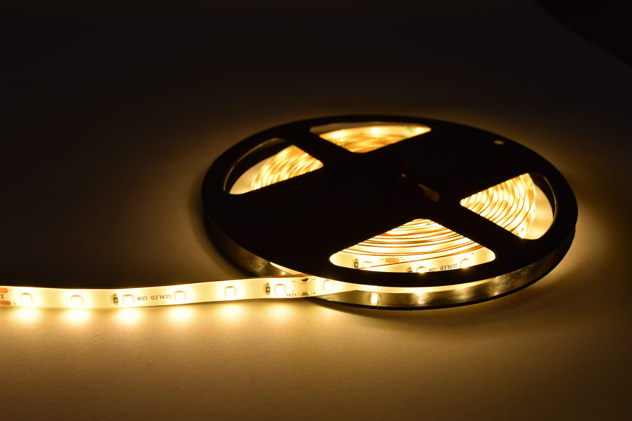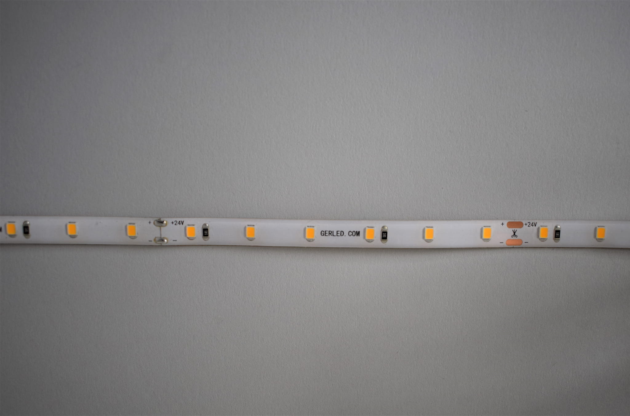 Taśmy GERLED® Professional 2835 zasilane napięciem 24V pozornie niewiele różnią się od taśm zasilanych na 12V jednak kilka kwestii sprawia, że są one ciekawą alternatywą dla znacznie popularniejszych taśm 12V. Przede wszystkim zasilanie napięciem 24V znacznie ogranicza spadki napięcia na całej długości taśmy LED i pozwala na zasilanie dłuższych odcinków taśmy niż w przypadku 12V. Szczególnie przy taśmach o dużym poborze mocy zaleca się zasilanie 24V. Ponadto taśmy 24V ułatwiają integrację z systemami inteligentnych instalacji.