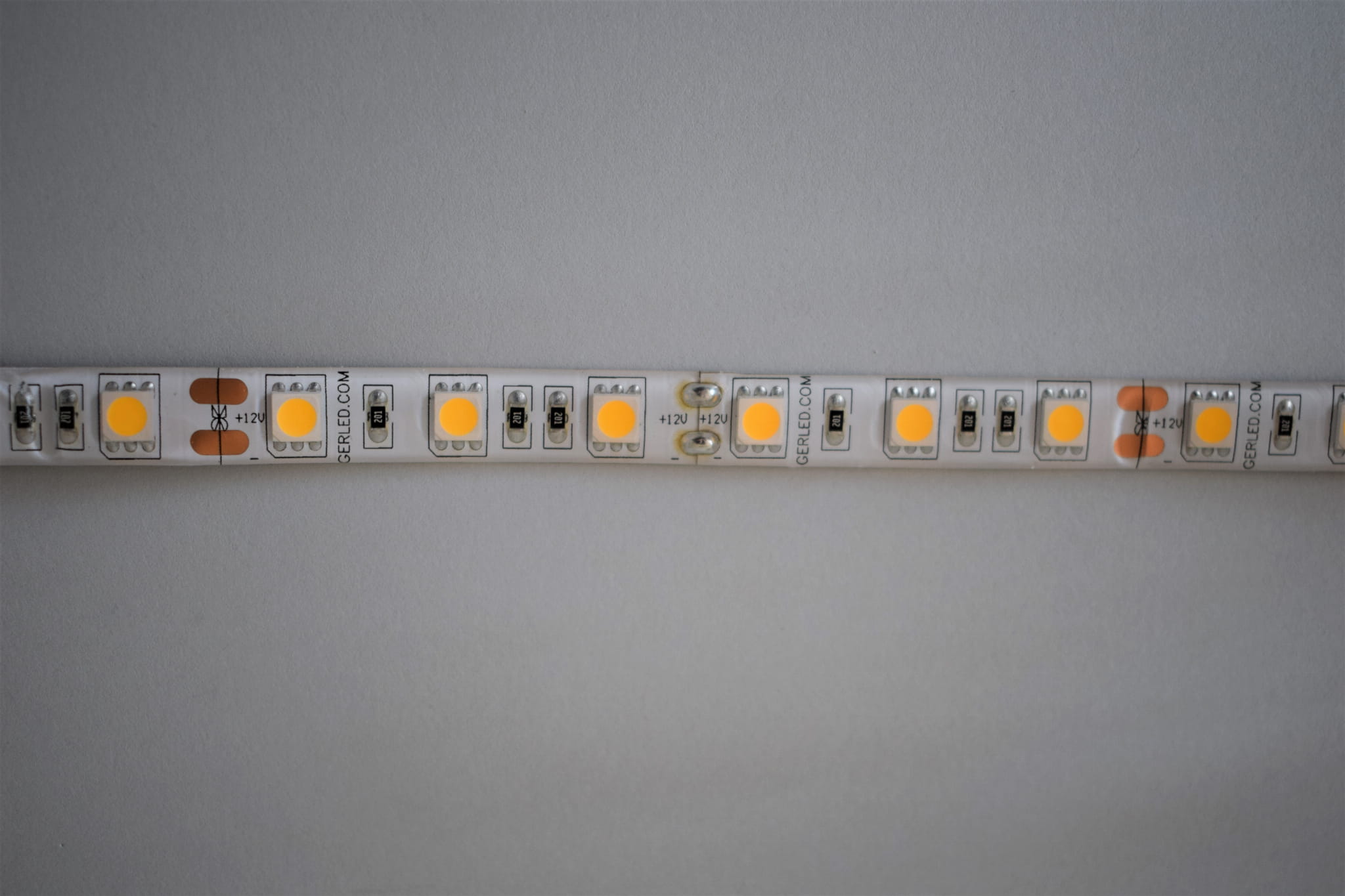 Taśmy LED z serii GERLED® Professional posiadają podwójną warstwę podłoża PCB. Zapewnia ona lepsze odprowadzanie ciepła z diod ledowych, a co za tym idzie, znacząco zwiększa żywotność produktu. Dzięki zwiększonej grubości podłoża taśma jest również bardziej odporna na uszkodzenia mechaniczne.
