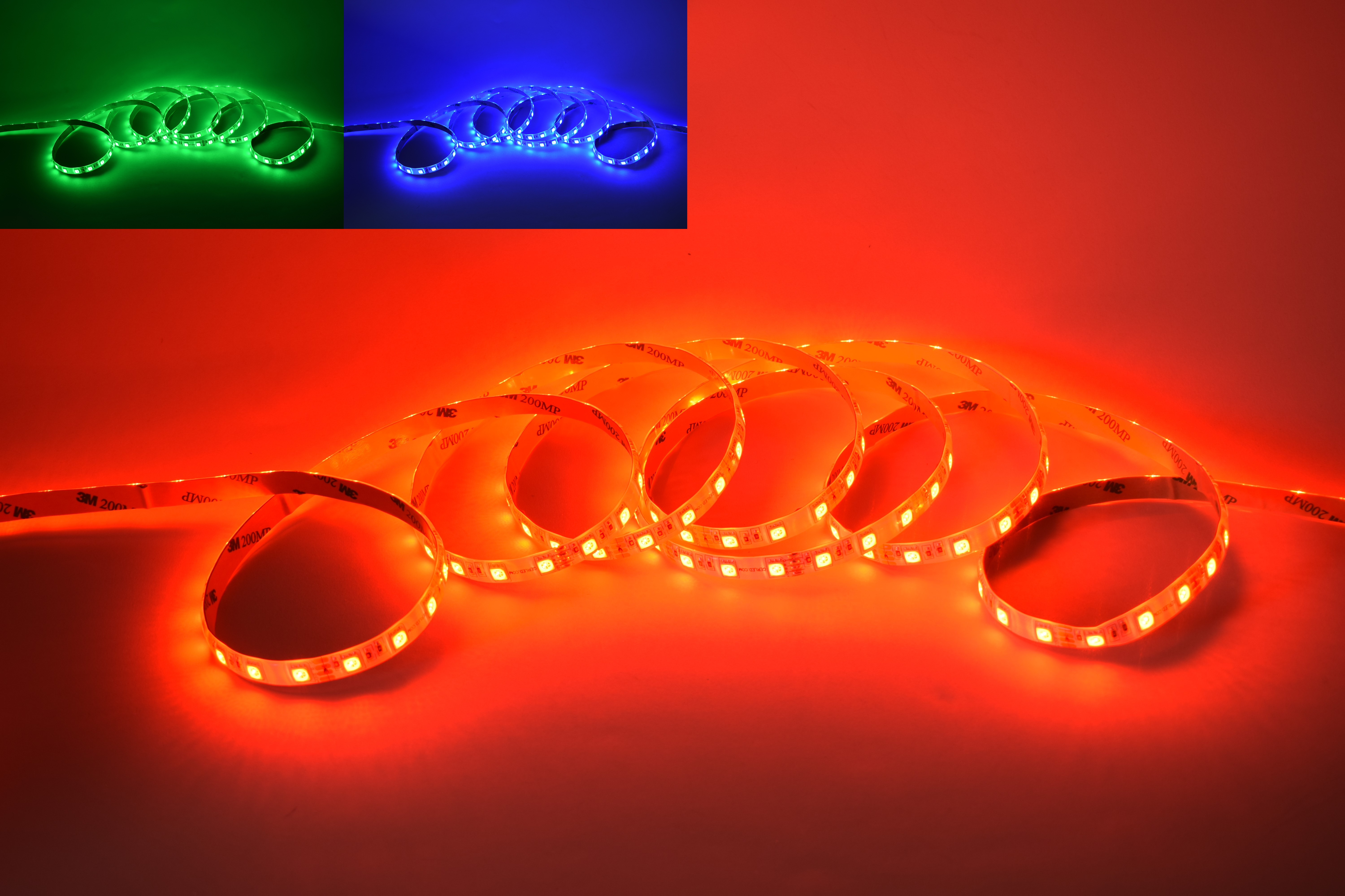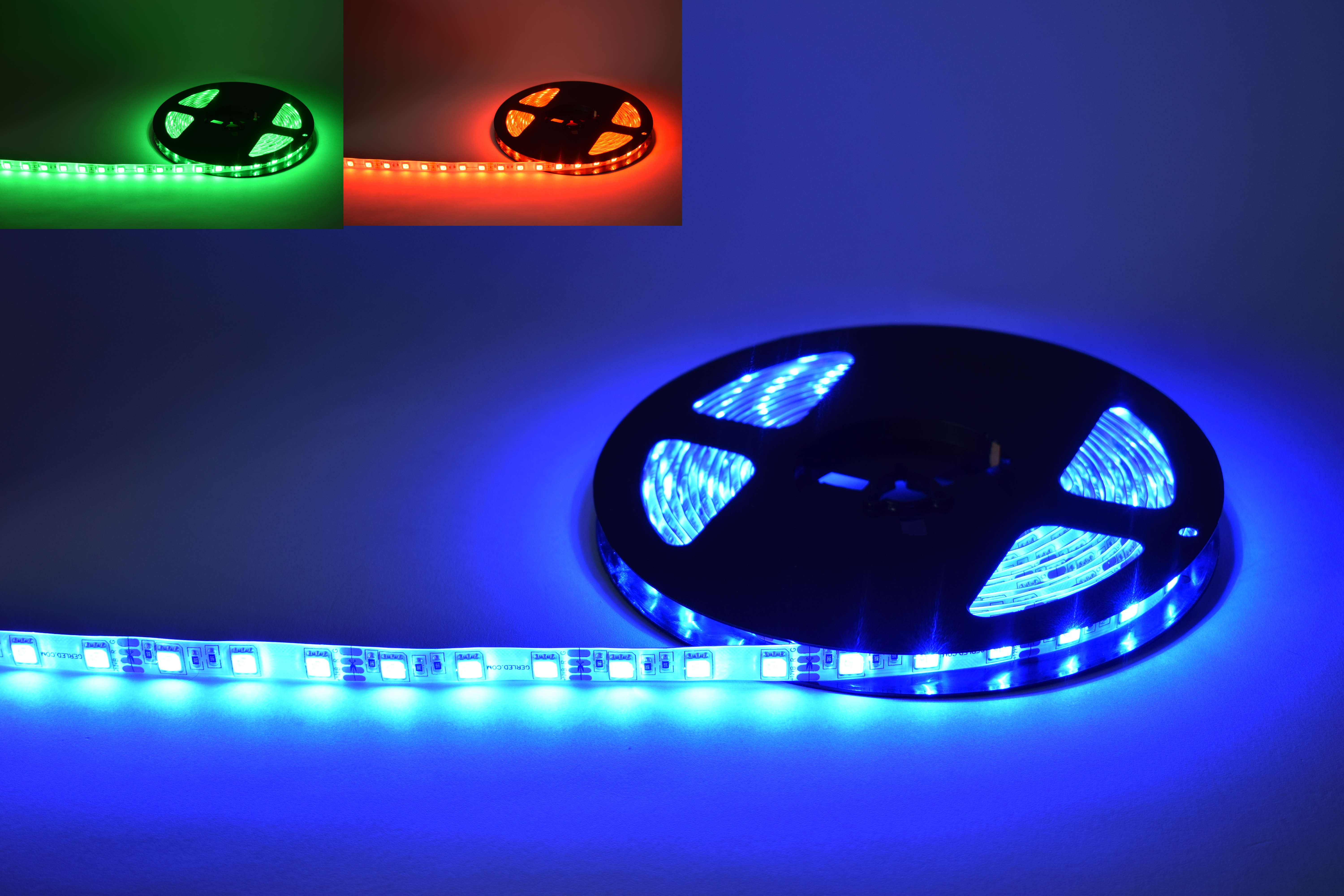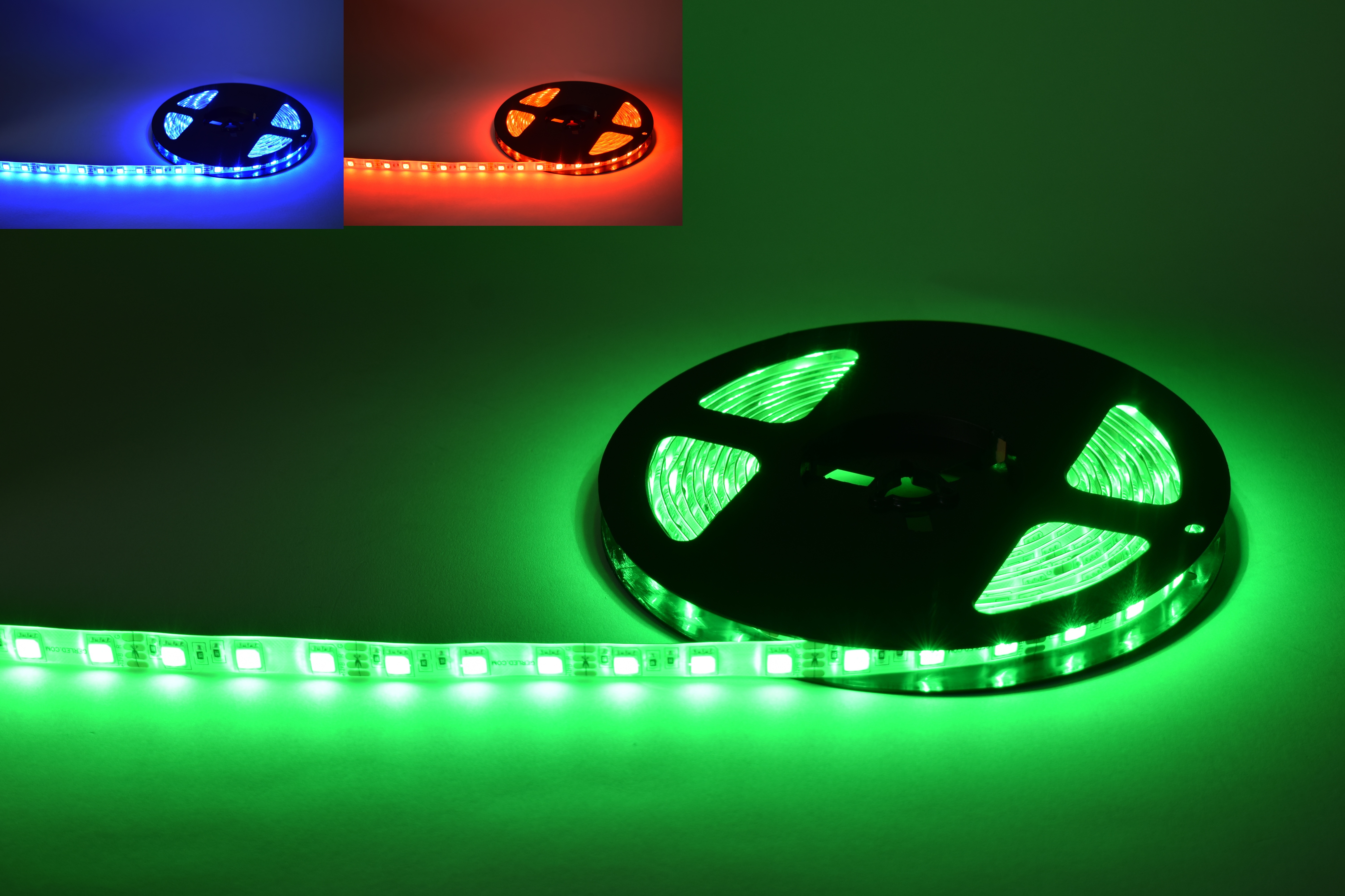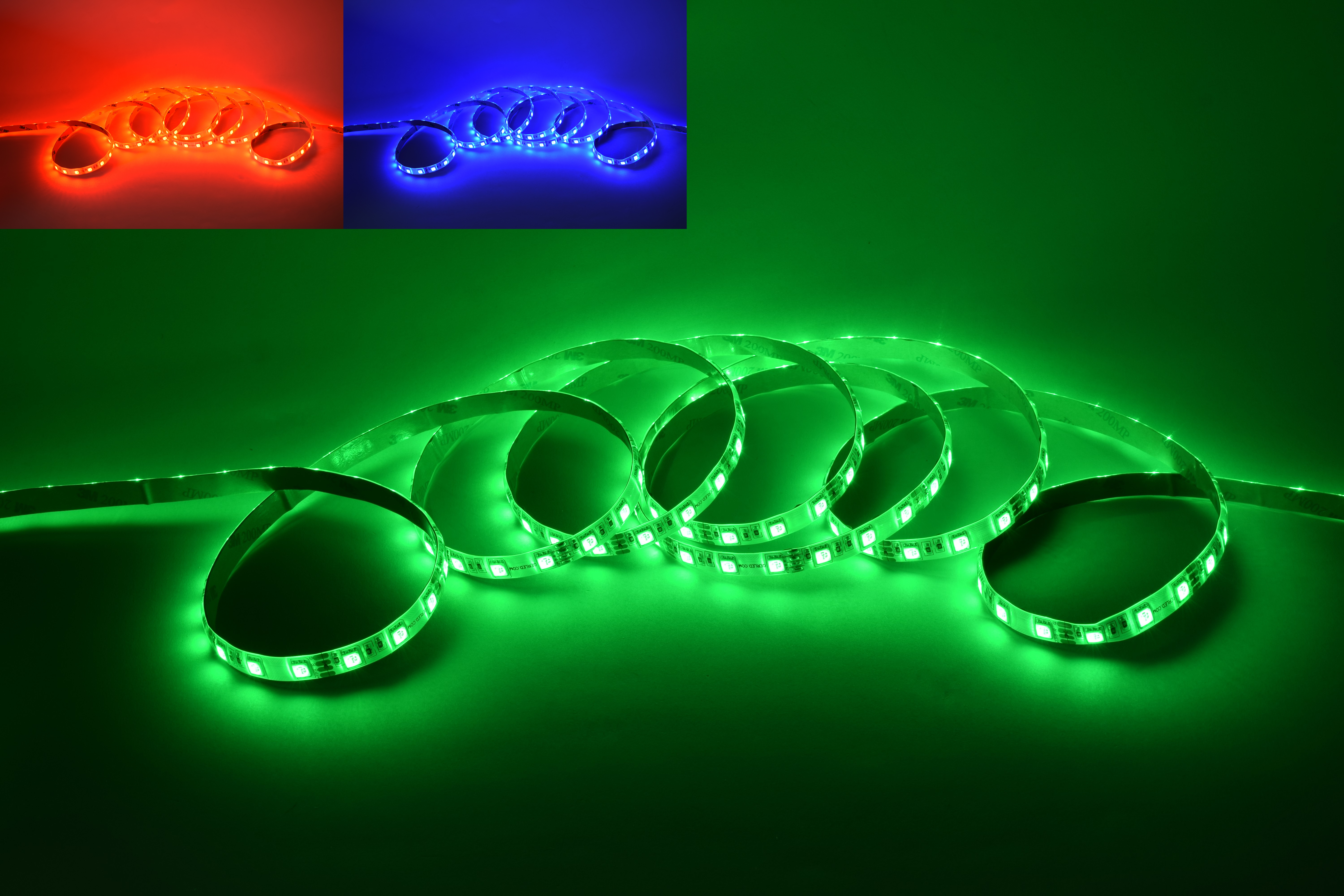Taśma LED SMD 5050 RGB z serii GERLED® Professional IP 65 posiada specjalne diody, które mogą świecić w trzech różnych kolorach - czerwonym, zielonym lub niebieskim. Kolorami oraz natężeniem światła można sterować w dowolny sposób za pomocą odpowiednio dobranego sterownika manualnego bądź z pilotem, które również znajdują się w naszej ofercie.