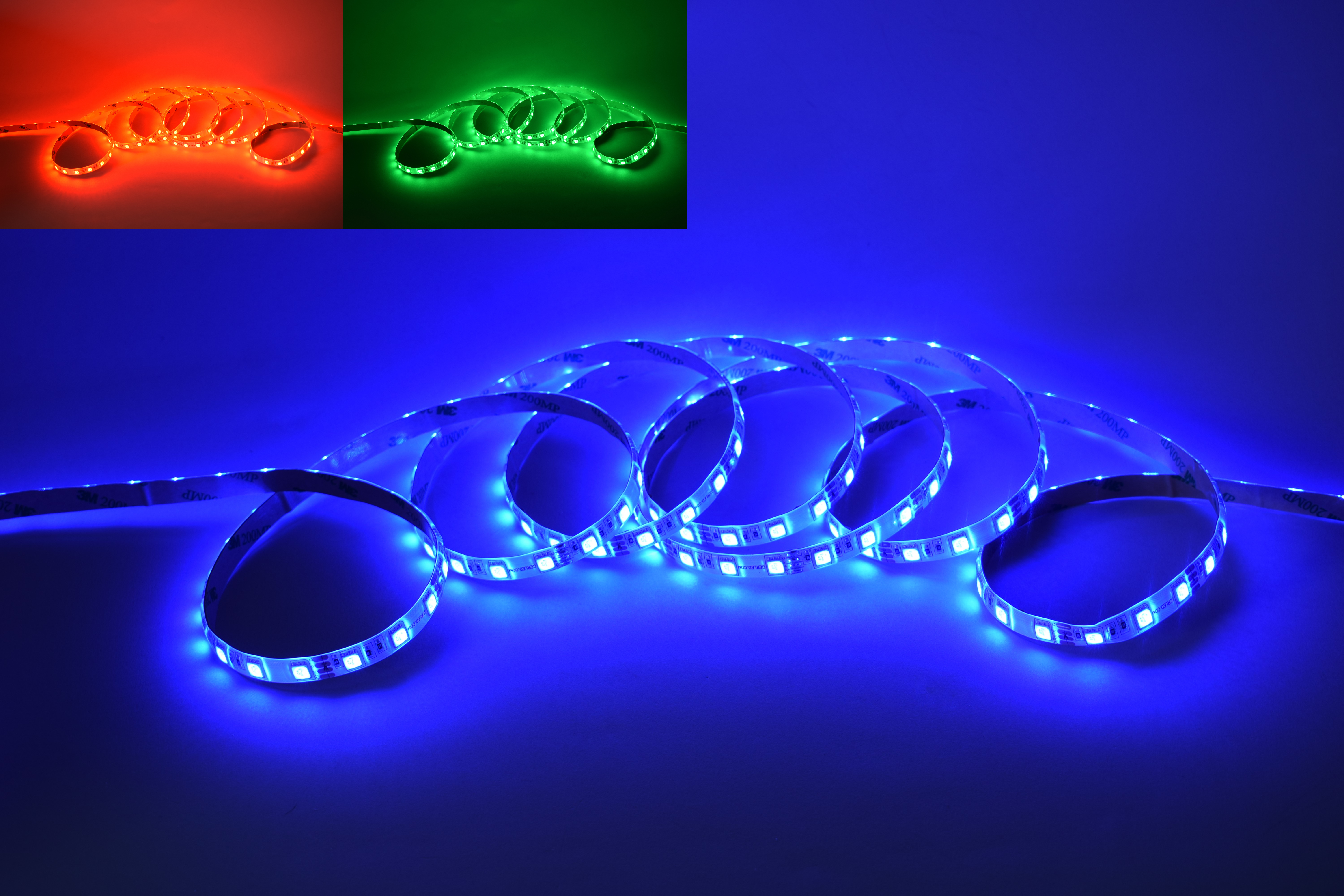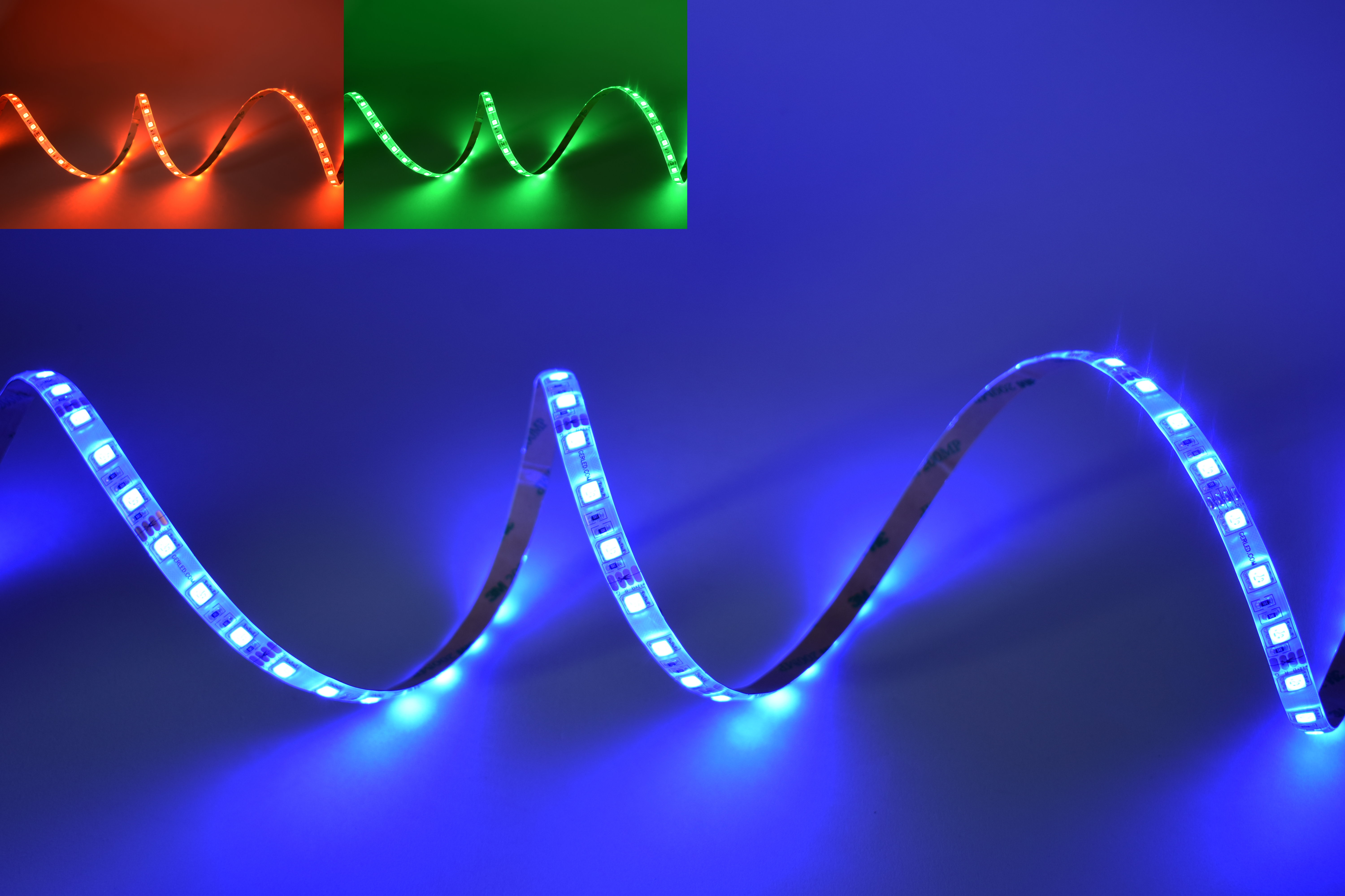 Taśma LED SMD 5050 RGB z serii GERLED® Professional IP 65 posiada specjalne diody, które mogą świecić w trzech różnych kolorach - czerwonym, zielonym lub niebieskim. Kolorami oraz natężeniem światła można sterować w dowolny sposób za pomocą odpowiednio dobranego sterownika manualnego bądź z pilotem, które również znajdują się w naszej ofercie.
