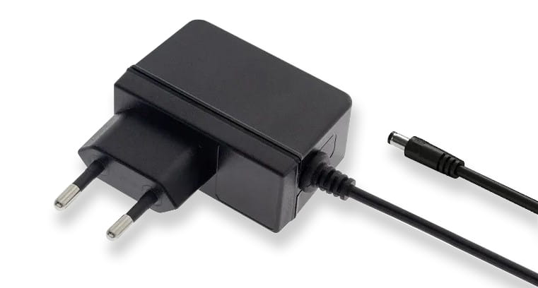 Zasilacz impulsowy gniazdkowy 18W, z przewodem o długości 150 cm, zakończony złączem DC.